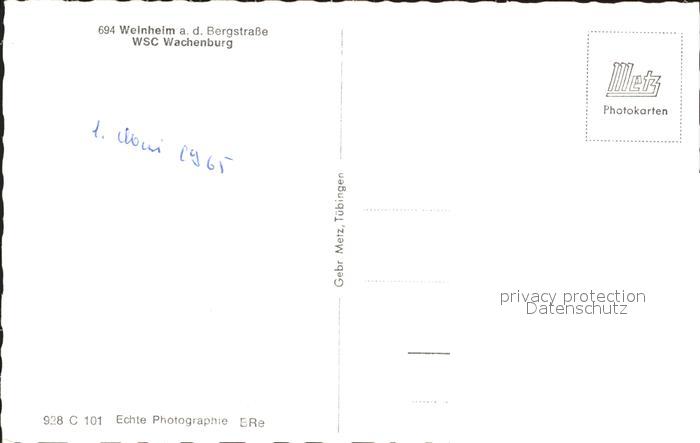 72096275 Weinheim Bergstrasse WSC Wachenburg postalisch nicht gelaufen Erhaltung siehe scans KatCode: 11110008226096