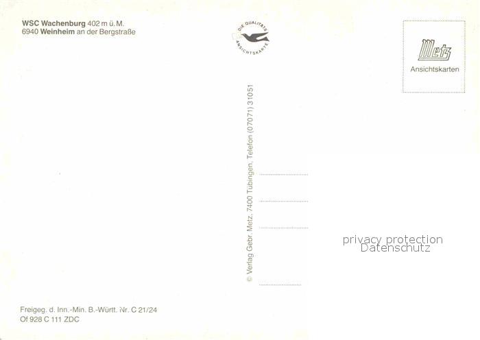 72877118 Weinheim Bergstrasse WSC Wachenburg Fliegeraufnahme postalisch nicht gelaufen Erhaltung siehe scans [FriedD77] KatCode: 11110008226096