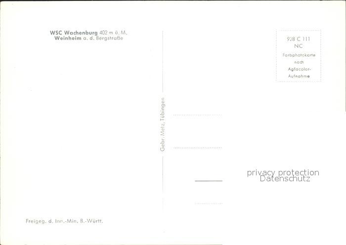 72222253 Weinheim Bergstrasse WSC Wachenburg Fliegeraufnahme postalisch nicht gelaufen Erhaltung siehe scans KatCode: 11110008226096