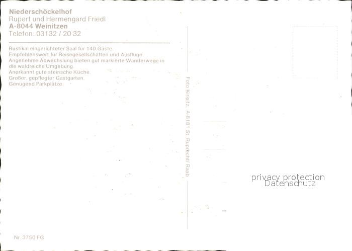 72051469 Weinitzen Niederschoeckelhof Gastraum Terrasse Dinner postalisch nicht gelaufen Erhaltung siehe scans KatCode: 11390221060654