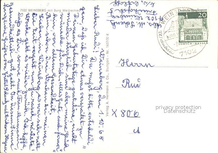 72403023 alte Postkarte Weinsberg Burg Weibertreu postalisch gelaufen Erhaltung siehe scans KatCode: 11110008125102
