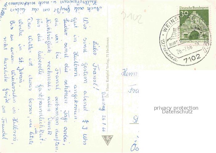 74052562 alte Postkarte Weinsberg HEILBRONN BW Panorama Statue Kernerhaus Rathaus postalisch gelaufen Erhaltung siehe scans [WerneD78] KatCode: 11110008125102