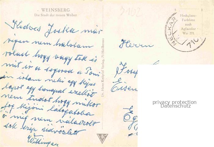 74052558 alte Postkarte Weinsberg HEILBRONN BW Panorama postalisch gelaufen Erhaltung siehe scans [WerneD78] KatCode: 11110008125102