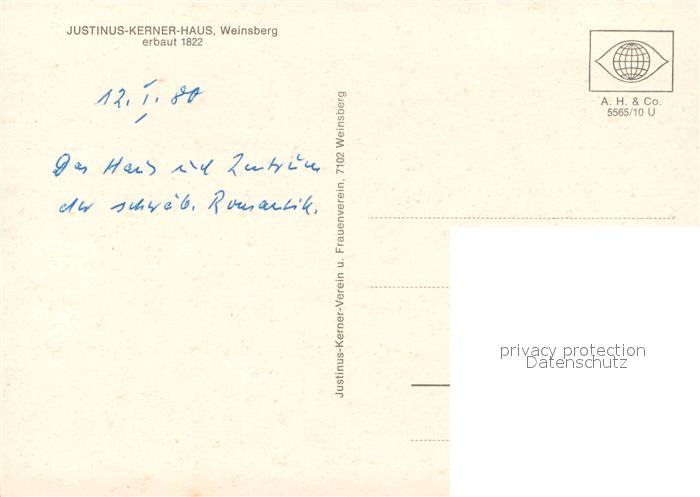 73644282 Weinsberg Justinus Kerner Haus erbaut 1822 postalisch nicht gelaufen Erhaltung siehe scans [FriedD77] KatCode: 11110008125102