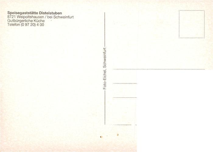 73875809 Weipoltshausen Unterfranken Speisegaststaette Distelstuben Terrasse postalisch nicht gelaufen Erhaltung siehe scans [FriedD77] KatCode: 11110009678186