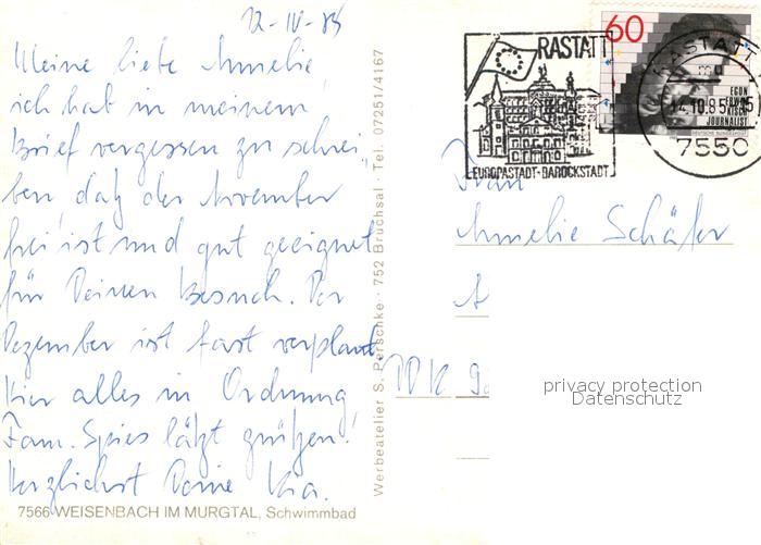 72969861 alte Postkarte Weisenbach Murgtal Freibad postalisch gelaufen Erhaltung siehe scans [LiesaD40] KatCode: 11110008216059