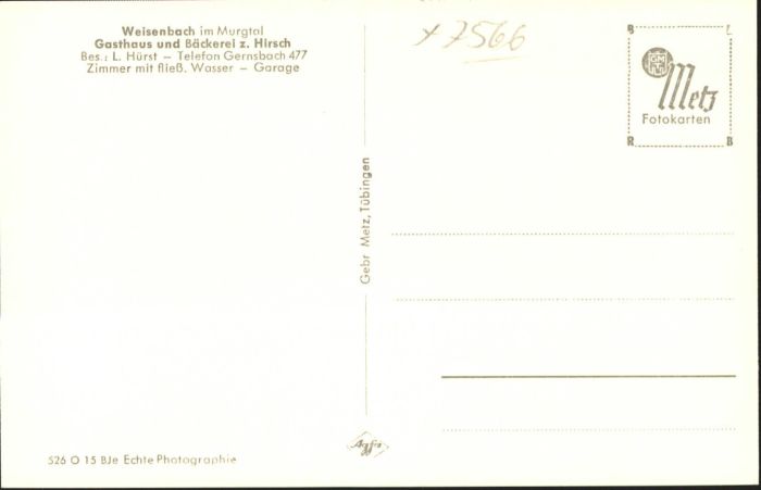 40764966 Weisenbach Murgtal Gasthaus Bäckerei Hirsch KatCode 11110008216059