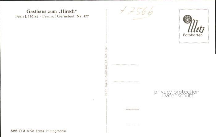 41767419 Weisenbach Murgtal Gasthaus zum Hirsch postalisch nicht gelaufen Erhaltung siehe scans KatCode: 11110008216059