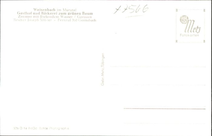 40764965 Weisenbach Murgtal Gasthof Bäckerei zum grünen Baum * KatCode 11110008216059