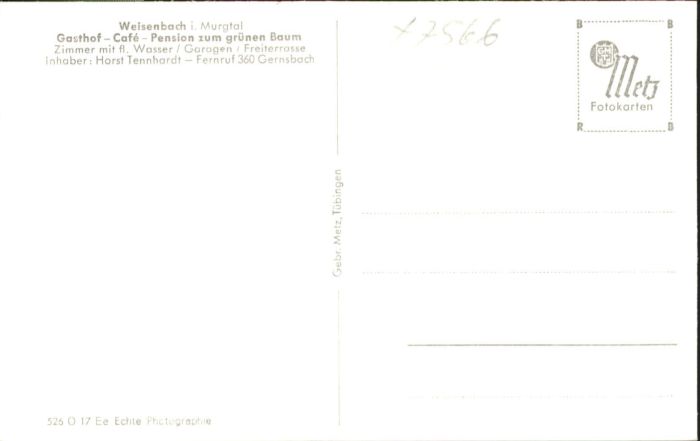 40764968 Weisenbach Murgtal Gasthof Cafe Pension zum grünen Baum KatCode 11110008216059