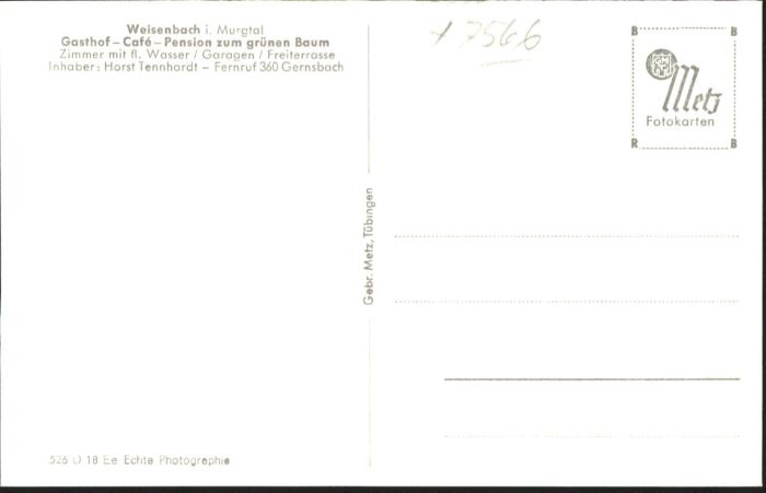 40764969 Weisenbach Murgtal Gasthof Cafe Pension zum grünen Baum KatCode 11110008216059