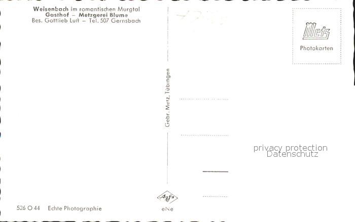 41767438 Weisenbach Murgtal Gasthof Metzgerei Blume postalisch nicht gelaufen Erhaltung siehe scans KatCode: 11110008216059