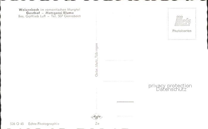 41767439 Weisenbach Murgtal Gasthof Metzgerei Blume postalisch nicht gelaufen Erhaltung siehe scans KatCode: 11110008216059