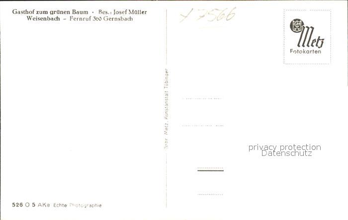 41767420 Weisenbach Murgtal Gasthof zum gruenen Baum postalisch nicht gelaufen Erhaltung siehe scans KatCode: 11110008216059