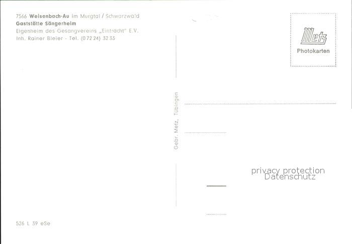 41768031 Weisenbach Murgtal Gaststaette Saengerheim postalisch nicht gelaufen Erhaltung siehe scans KatCode: 11110008216059