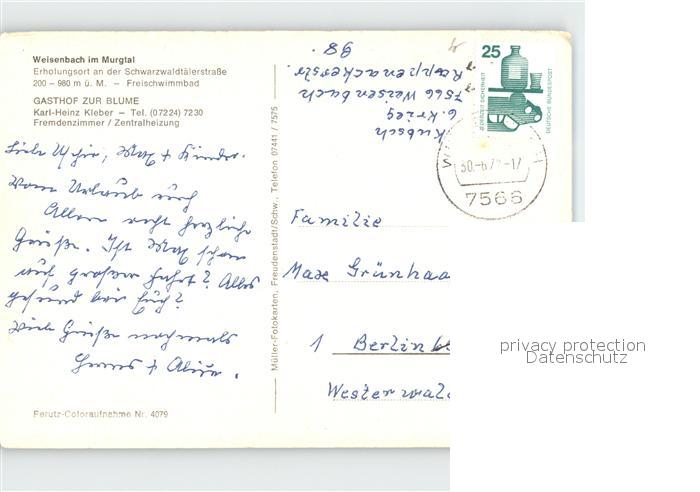 72302213 alte Postkarte Weisenbach Murgtal Schwimmbad postalisch gelaufen Erhaltung siehe scans KatCode: 11110008216059