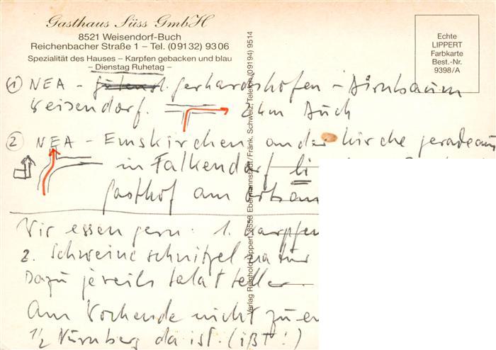 73898337 Weisendorf Oberfranken Gasthaus Suess Gastraeume postalisch nicht gelaufen Erhaltung siehe scans [WerneD78] KatCode: 11110009572164