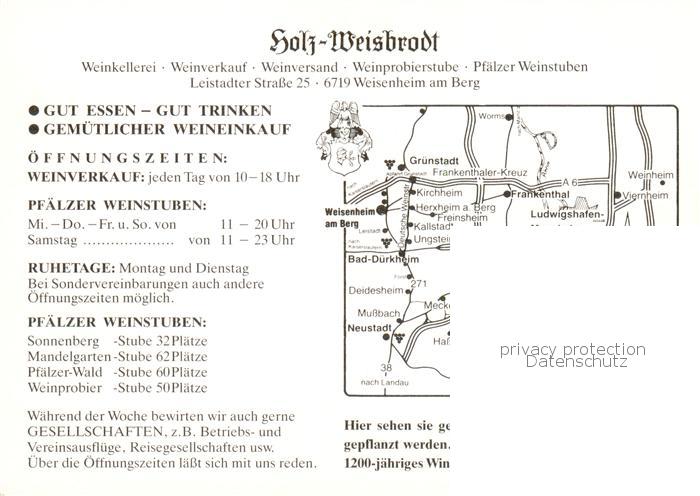 73866294 Weisenheim Berg Holz Weisbrodt Weinkellerei Weinprobierstube Weinverkauf Pfaelzer Weinstuben postalisch nicht gelaufen Erhaltung siehe scans [WerneD78] KatCode: 11110007332049