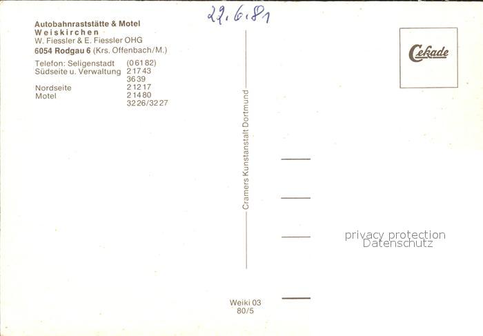 72125126 Weiskirchen Offenbach Main Autobahn Raststaette und Motel postalisch nicht gelaufen Erhaltung siehe scans KatCode: 11110006438011