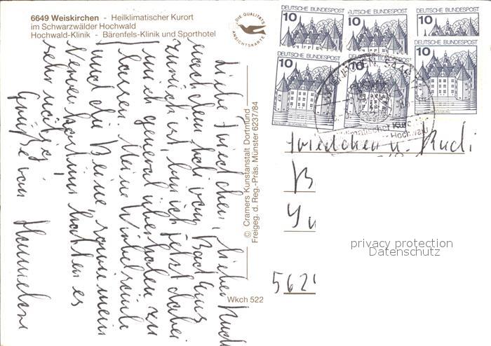 72109894 alte Postkarte Weiskirchen Saar Baerenfels Klinik und Sporthotel Fliegeraufnahme postalisch gelaufen Erhaltung siehe scans KatCode: 11110010042117