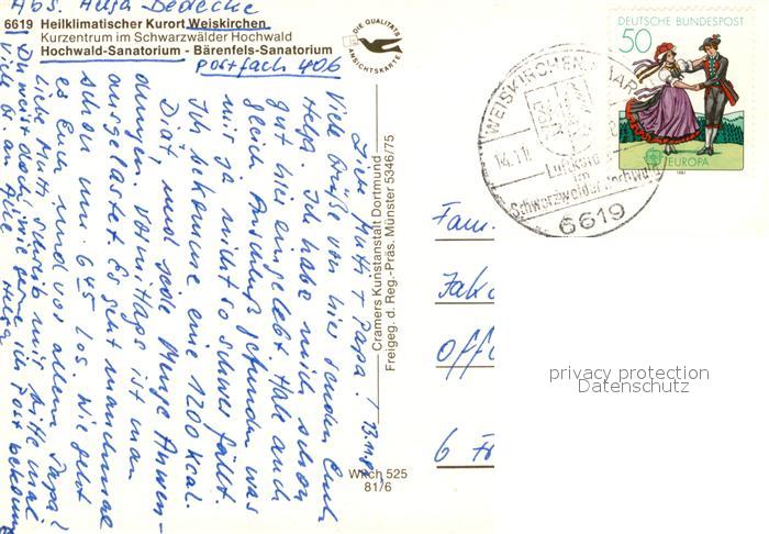 73026279 alte Postkarte Weiskirchen Saar Fliegeraufnahme Hochwald Baerenfels Sanatorium postalisch gelaufen Erhaltung siehe scans [KathaD81] KatCode: 11110010042117