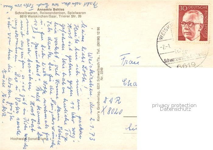 73107228 alte Postkarte Weiskirchen Saar Hochwald Sanatorium postalisch gelaufen Erhaltung siehe scans [KathaD81] KatCode: 11110010042117