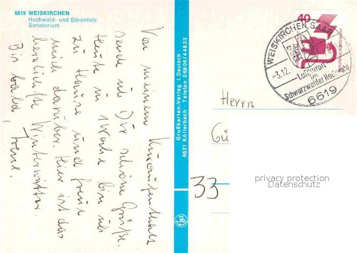 72840295 alte Postkarte Weiskirchen Saar Hochwald und Baerenfels Sanatorium Wassertreten Massagebad Speisesaal postalisch gelaufen Erhaltung siehe scans [WerneD78] KatCode: 11110010042117