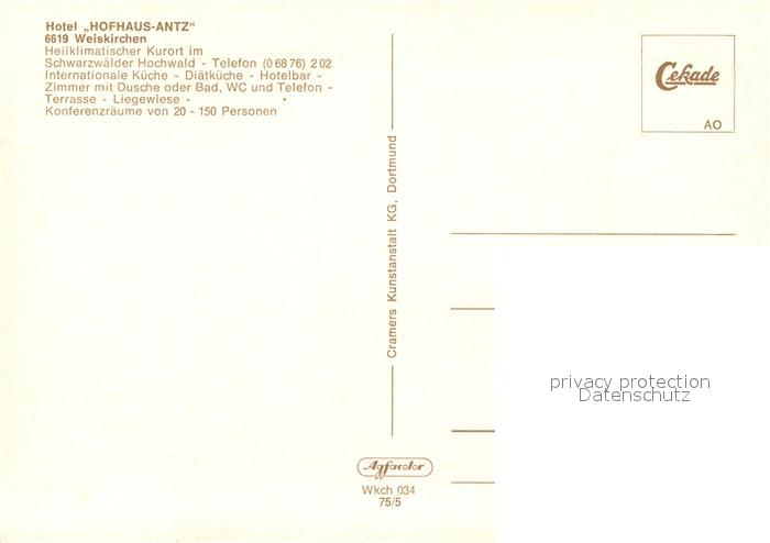 73125720 Weiskirchen Saar Hotel Restaurant Hofhaus-Antz postalisch nicht gelaufen Erhaltung siehe scans [LiesaD40] KatCode: 11110010042117