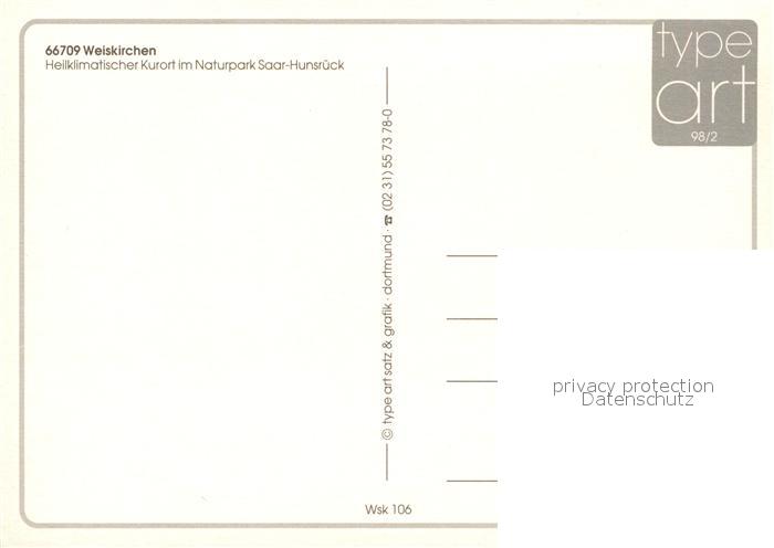 73216462 Weiskirchen Saar Kurort Naturpark Saar Hunsrueck Kurzentrum Kurparksee Holzbachtal Chronik postalisch nicht gelaufen Erhaltung siehe scans [FriedD77] KatCode: 11110010042117