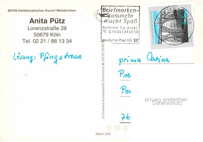 72819153 alte Postkarte Weiskirchen Saar Kurzentrum Sporthotel Kurparksee Holzbachtal Schwarzwaelder Hochwald postalisch gelaufen Erhaltung siehe scans [FriedD77] KatCode: 11110010042117