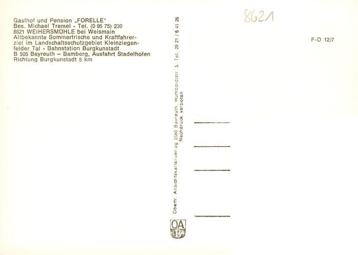 73936732 Weismain Gasthof Pension Forelle Weihersmuehle postalisch nicht gelaufen Erhaltung siehe scans [WerneD78] KatCode: 11110009478176