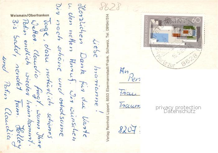73873820 alte Postkarte Weismain Ortspartie mit Kirche postalisch gelaufen Erhaltung siehe scans [WerneD78] KatCode: 11110009478176