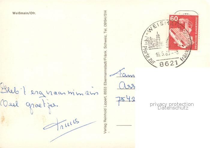 73737074 alte Postkarte Weismain Panorama postalisch gelaufen Erhaltung siehe scans [FriedD77] KatCode: 11110009478176