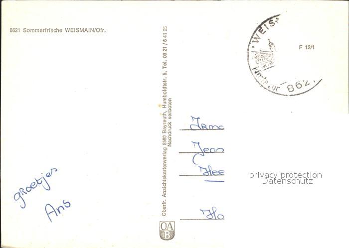 72304186 alte Postkarte Weismain Strassenpartie mit Kirche postalisch gelaufen Erhaltung siehe scans KatCode: 11110009478176