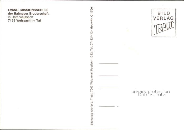 72207527 Weissach Ev Missionsschule der Bahnauer Bruderschaft postalisch nicht gelaufen Erhaltung siehe scans KatCode: 11110008115052
