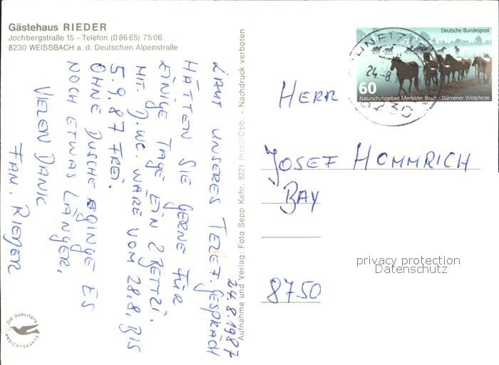 72258107 alte Postkarte Weissbach Alpenstrasse Gaestehaus Rieder postalisch gelaufen Erhaltung siehe scans KatCode: 11110009172131