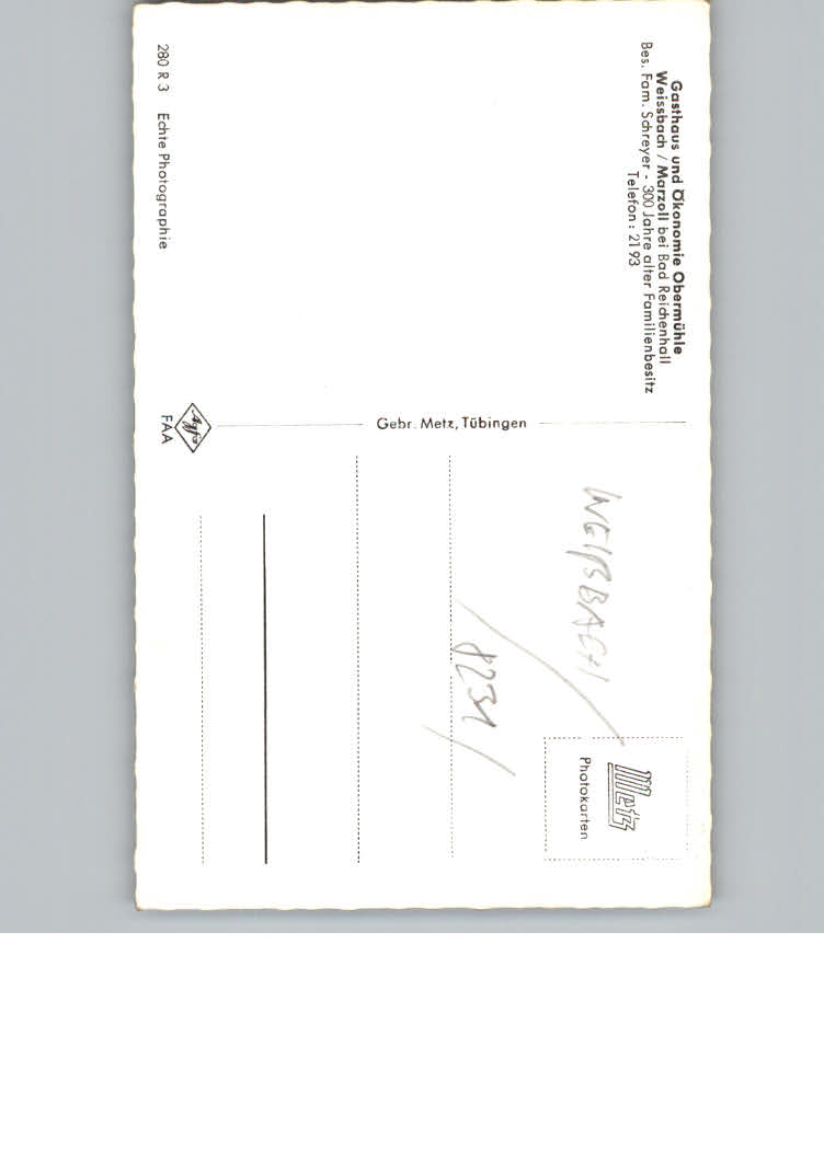 31157955 Weissbach Alpenstrasse Gasthaus Obermuehle postalisch nicht gelaufen KatCode: 11110009172131