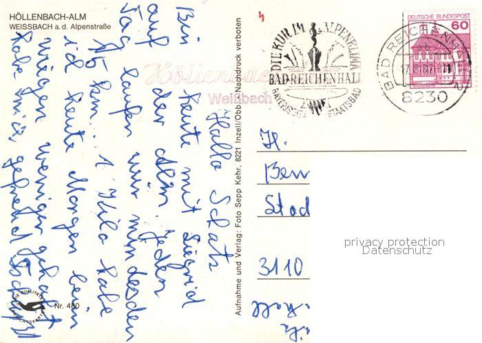 72942517 alte Postkarte Weissbach Alpenstrasse H?llenbruch Alm mit Ristfeuchthorn postalisch gelaufen Erhaltung siehe scans [LiesaD40] KatCode: 11110009172131