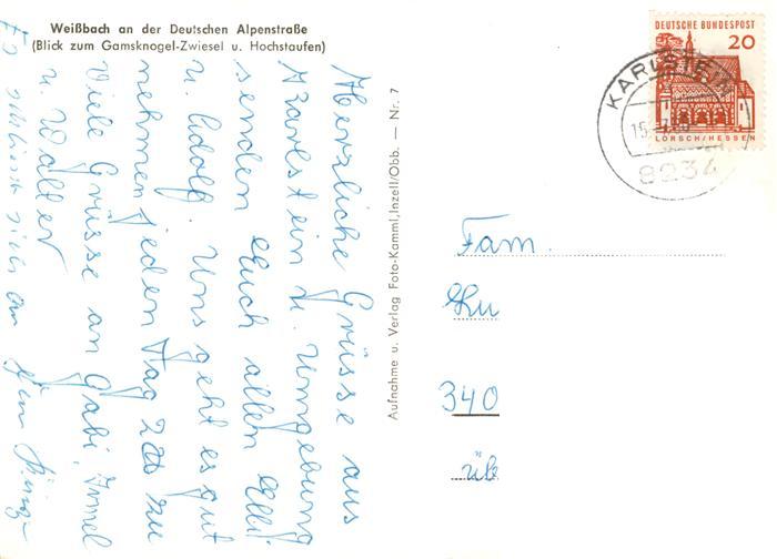 73938812 alte Postkarte Weissbach Alpenstrasse Panorama Blick zum Gamskogel Zwiesel und Hochstaufen postalisch gelaufen Erhaltung siehe scans [FriedD77] KatCode: 11110009172131