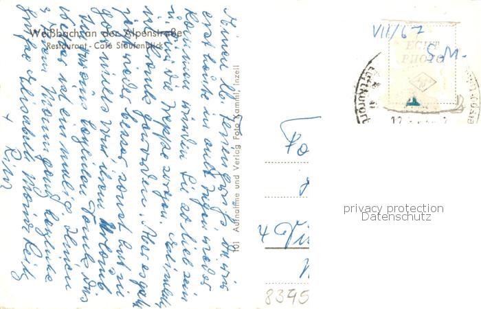 73784874 alte Postkarte Weissbach Alpenstrasse Restaurant Cafe Staufenblick postalisch gelaufen Erhaltung siehe scans [FriedD77] KatCode: 11110009172131