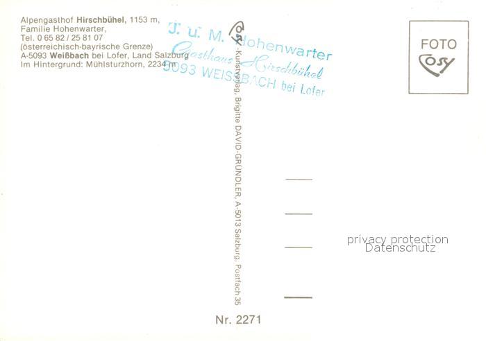 73355946 Weissbach Lofer Alpengasthof Hirschbuehel Mooswacht Muehlsturzhorn Alpen postalisch nicht gelaufen Erhaltung siehe scans [FriedD77] KatCode: 11390322050627