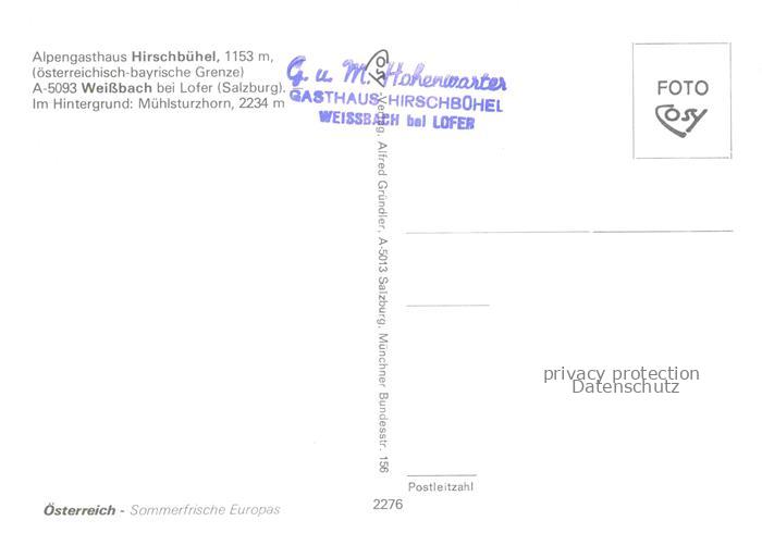 74006274 Weissbach Lofer AT Alpengasthaus Hirschbuehel oesterreichisch-bayrische Grenze postalisch nicht gelaufen Erhaltung siehe scans [FriedD77] KatCode: 11390322050627