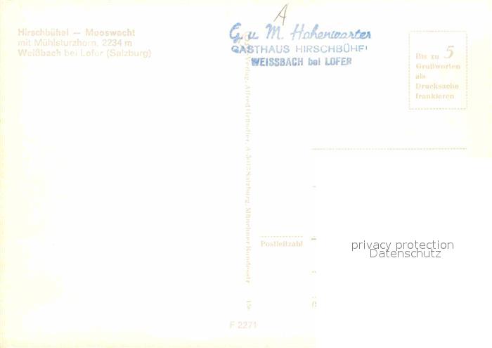 72913916 Weissbach Lofer Hirschbuehel Mooswach Muehlsturzhorn postalisch nicht gelaufen Erhaltung siehe scans [KathaD81] KatCode: 11390322050627