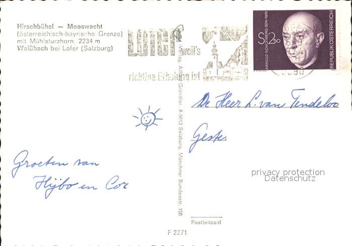72425171 alte Postkarte Weissbach Lofer Hirschbuehel Mooswacht Gasthof Kapelle Grenze Loferer Steinberge postalisch gelaufen Erhaltung siehe scans KatCode: 11390322050627
