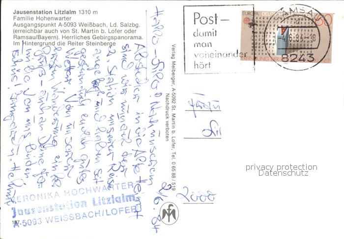 72303130 alte Postkarte Weissbach Lofer Jausenstation Litzlalm postalisch gelaufen Erhaltung siehe scans KatCode: 11390322050627