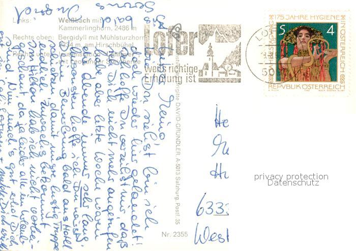 73249151 alte Postkarte Weissbach Lofer Panorama mit Kammerlinghorn Berchtesgadener Alpen Wegekreuz Hirschbuehel Jausenstation Leoganger Steinberge postalisch gelaufen Erhaltung siehe scans [FriedD77] KatCode: 11390322050627