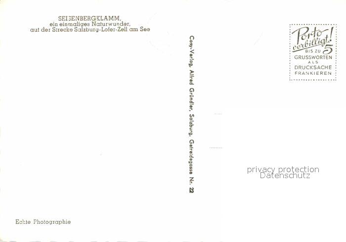 72643935 Weissbach Lofer Seisenbergklamm Schlucht postalisch nicht gelaufen Erhaltung siehe scans [FriedD77] KatCode: 11390322050627