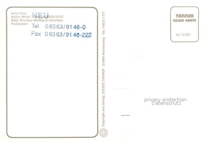 72966430 Weissbach Pfronten Hotel Post postalisch nicht gelaufen Erhaltung siehe scans [NatalD47] KatCode: 11110009777159