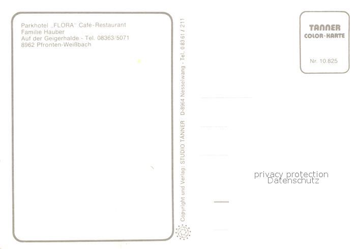 73541284 Weissbach Pfronten Parkhoteel Flora Cafe Restaurant postalisch nicht gelaufen Erhaltung siehe scans [KathaD81] KatCode: 11110009777159
