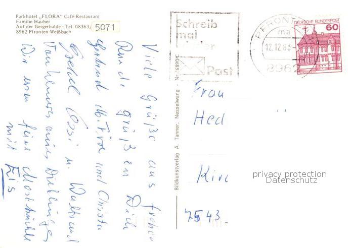 72929620 alte Postkarte Weissbach Pfronten Parkhotel Flora Winterlandschaften postalisch gelaufen Erhaltung siehe scans [KathaD81] KatCode: 11110009777159